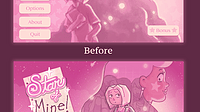- March 11, 2018 by One Dove Above#visual novel, #menu screen, #animation, #logo, #star of mine, #sound effects, #sfx, #title screenI don't have a new version of the game ready yet, but I do have this new menu screen! Art: The characters are much more "on model", and colorful. As you can see, I have an updated logo for both my "s... Continue reading